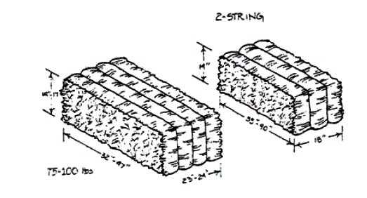 Los fardos se dividen por tamaños. Los más comunes son el pequeño de dos cuerdas y el mediano de tres cuerdas. Además de estos fardos pequeños hay otros grandes, rectangulares y redondos que sólo se pueden mover con equipo especial.