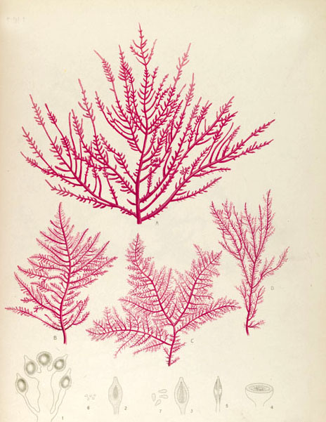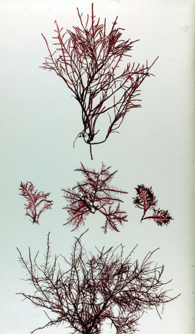 Nombres que recibe esta planta: Latín: Fucus spinosus (Gelidium corneum), Geldium amansii Kütz Familia: Gracilariáceas, gelidiáceas, gigartináceas, rodofíceas Hábitat: Mares y océanos de las zonas templadas del palneta. Se encuentra especialmente en Asia, América del Norte y del Sur y Europa. Hay que destacar que el auténtico agar agar procedía del Japón más concretamente la variedad Geldium amansii Kütz Tipo de planta: No se trata de una alga, es el producto de extracción que proviene de diversas algas de la clase de las Floriedeae, entre las que tenemos la familia de las glacilariáceas, gelidáceas y gigartináceas. Son algas de tamaño pequeño y talo de color rojo carmín Parte empleada: El mucílago obtenido tras hervir el alga y desecar el líquido