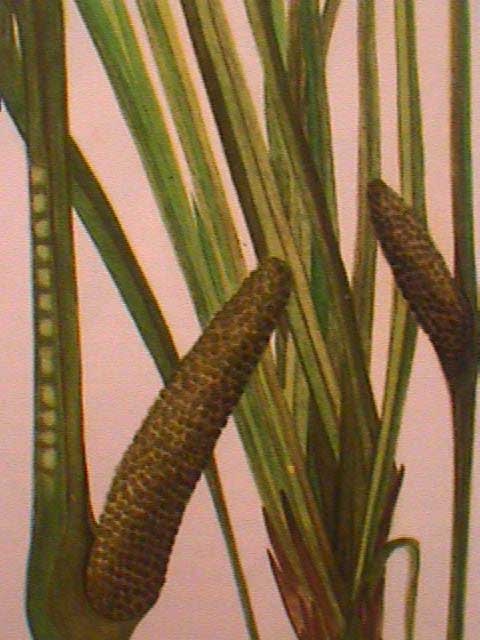 Tipo de planta: planta formada por rizomas que alcanzan el metro de largo y un grosor de 2 cm. Crece arrastrándose por zonas pantanosas. De sus rizomas salen las hojas que tienen forma de espada y miden hasta un metro de longitud. Los tallos florales emergen en los meses de mayo y junio. Las flores son hemafroditas y son de color rosa estando agrupadas formando inflorescencias en espádice.