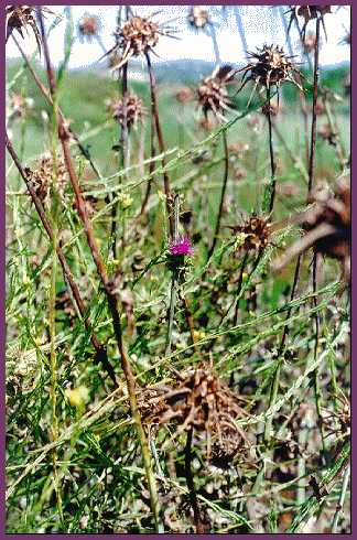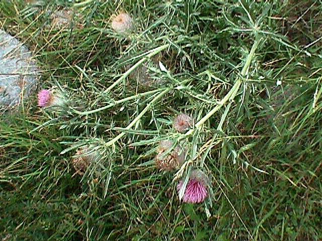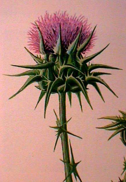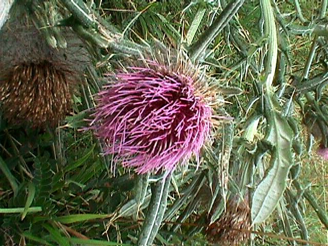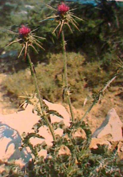 Flores: son colgantes, tubulares con capítulos florales terminales grandes de hasta 8 cm y con brácteas espinosas. SOn de color púrpura