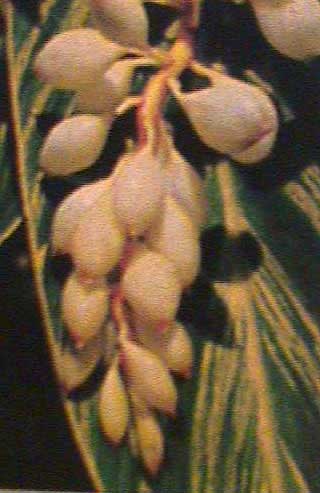 Planta vivaz de una altura aproximada de 1,30 m., cultivada en los países cálidos, especialmente en la India y en la China tropical, y también en Jamaica. Algunos de sus tallos son estériles y sirven para la asimilación, mientras que otros llevan flores en espiga, primero verdes y luego purpúreas, cuyos grandes labelos son de color violeta manchados de amarillo, por lo que recuerdan vagamente a las orquídeas. No producen ni frutos ni semillas. La planta se reproduce por su rizoma