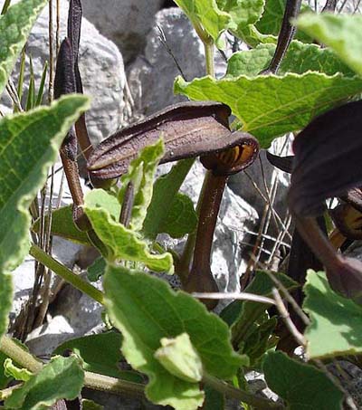 mismo hace metida en la natura de la mujer» Del griego pistós = fiel, garante y como se dijo anteriormente lochia = relativo al parto. Parásitos y enfermedades Sirve de alimento (planta nutricia) a la oruga Zerynthia rumina (Oruga arlequin) éstas, de unos 3 cm de largo, son monofagas y se alimentan únicamente con el género Aristolochia. La mariposa pone un huevo en cada aristolochia de forma que sólo haya una oruga en cada planta. Usos Existe un caso documentado en Cataluña (España), de fibrosis renal intersticial rápidamente progresiva debido al consumo en infusión de la Aristolochia pistolochia al confundirse con otras hierbas. Por este motivo en Orden de 3 de octubre de 1973, del Art. 42 de la Ley del Medicamento por parte de la Agencia Española del Medicamento se impide la venta, suministro e importación de la Aristolochia. Especies de la Península Ibérica