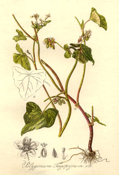 NOMBRES Castellano: Trigo sarraceno FAMILIA: poligonáceas El trigo sarraceno no es exactamente un cereal, pero sin embargo fue durante mucho tiempo un alimento esencial en la Gran Bretaña y en la Europa des este. Por ejemplo los blinis rusos se elaboran con harian de trigo sarraceno al igual que los crepes bretones. Su sabor es fuerte, más intenso incluso que otros cereales. Posee un alto valor energético y ello es debido gracias a su contenido en hidratos de carbono, pero también posee vitamina P (rutina) que fortalece las venas y los capilares siendo efectiva en los tratamientos de arteriosclerosis y de la hipertensión. VITAMINAS Y MINERALES Vitaminas: El magnesio es muy beneficioso para los intestinos y el eparato digestivo en general. Así mismo debido a estos minerales y a la vitamina B, el trigo sarraceno es adecuado para el sistema nervioso (levanta el ánimo) y se recomienda durante el embarazo y la menopausia. Previene la osteoporosis