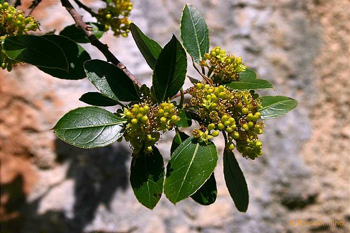 Nombres Botánico: Rhamnus alaternus Familia a la que pertenece: ramnáceas Principales componentes: Tipo de planta: Se trata de un arbusto dioico abundante en la flora del mediterráneo y casi toda la península que gusta de los terrenos calcáreos. Este arbusto no posee espinas