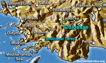 La Epístola a los Colosenses es uno de los veintisiete libros que constituyen el Nuevo Testamento. Es una breve carta dirigida a los cristianos de la ciudad de Colosas, en Frigia, al sudoeste de Asia Menor. La carta se presenta como obra de Pablo de Tarso, autor de otras epístolas incluidas en el Nuevo Testamento, y la tradición eclesiástica no cuestionó su autoría. Sin embargo, desde principios del siglo XIX se ha puesto en duda que fuese Pablo su verdadero autor. En la actualidad su autoría está discutida.Saltar a navegación, búsqueda Colosas (Κολοσσαί en griego antiguo, Colossae en latín) era una antigua ciudad de Frigia, en la península de Anatolia, cuyo nombre puede ser una deformación del término colosal. La ciudad estaba junto al río Licos, afluente del río Menderes, y situada a 18 kilómetros de Laodicea (en las proximidades de la actual ciudad turca de Denizli), cerca de la vía que unía Éfeso y el Éufrates. El lugar nunca ha sido excavado. En el año 396 a. C., en el transcurso de las Guerras Médicas, el sátrapa persa Tisafernes fue atraído a Colosas mediante un señuelo y asesinado por un agente de su rival Ciro el Joven. Plinio el Viejo afirmó que la lana de Colosas daba su nombre a la flor de la violeta persa. Durante el periodo helenístico, la ciudad fue un importante centro de comercio, sin embargo, en el siglo primero su tamaño e importancia se había reducido considerablemente. Es conocida principalmente por la epístola del apóstol san Pablo, conocida como Carta o Epístola a los colosenses, carta enviada a la comunidad cristiana de Colosas en el año 57 o 62. En aquel tiempo la ciudad estaba bajo jurisdicción romana, formando parte de la provincia de Asia. Aunque la mayoría de la población era de origen frigio, habitaban también la ciudad judíos, griegos y romanos. Al parecer, san Pablo no había visitado la ciudad antes de escribir su epístola a los colosenses, ya que expresa a Filemón en su epístola el deseo de visitar la ciudad nada más sea liberado de prisión. Parece ser que fue Epafras el fundador de la comunidad cristiana de la ciudad.[1] [2] La población entró en decadencia, posiblemente debido a un terremoto, y sus ruinas fueron ocupadas por la ciudad bizantina de Chonæ. Los escritos bizantinos y medievales muestran un cambio de nombre del lugar a Konia o Chonia. Konia fue el lugar de nacimiento de los escritores medievales Nicetas Acominato y su hermano Miguel En el arte ruso y bizantino, el tema del milagro del Arcángel Miguel en Konia es íntimamente ligado con este lugar. El monasterio del Milagro en el Kremlin moscovita, donde los zares rusos eran bautizados, estaba dedicado al milagro de Konia. AutoríaLa tradición eclesiástica ha venido atribuyendo la epístola a Pablo de Tarso, y sólo desde el siglo XIX se ha cuestionado esta idea. En la actualidad, las opiniones están divididas.[1] Los autores modernos partidarios de la autenticidad de la epístola se basan sobre todo, aparte de la tradición unánime de la Iglesia desde la época de Ireneo, en la presencia en ella de ideas características del pensamiento teológico de Pablo, y en la afinidad de la situación en ella descrita con la Epístola a Filemón, cuya autenticidad no se ha cuestionado: en ambas epístolas, el autor está en prisión, y en las dos figuran los mismos colaboradores. Quienes descartan que la epístola sea auténticamente paulina se basan en: