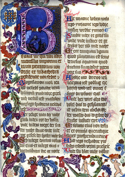 Página de un antiguo Salterio (Salmo 1).