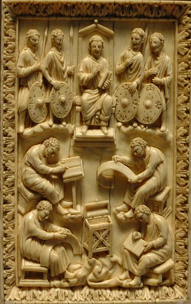 El rey David dictando los salmos a los escribas |